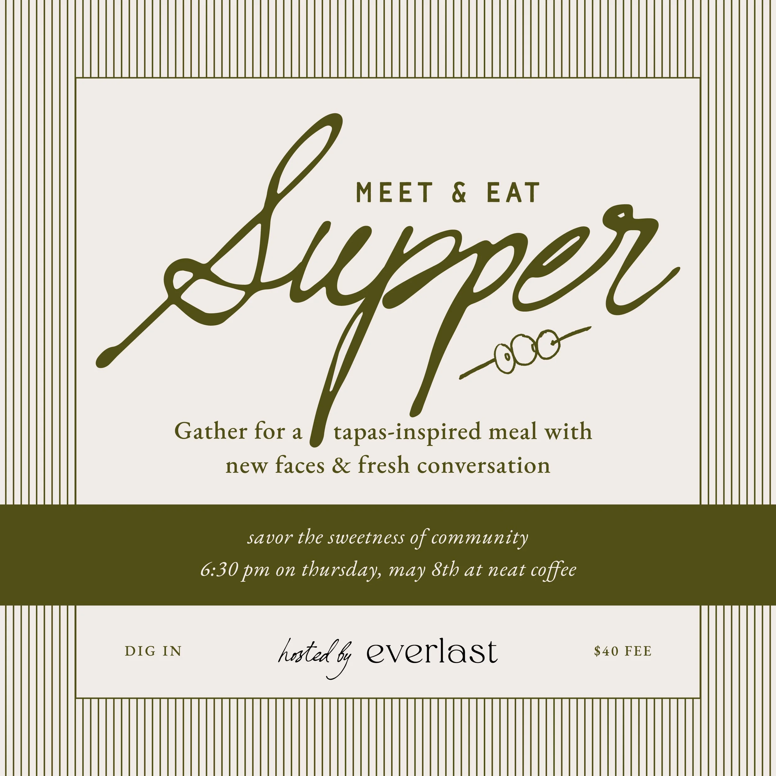 Gather with 10-12 strangers around a table within the local community to enjoy dinner! Every meal offers a gentle interruption of our normal routines to remind us that genuine connections can have simple beginnings. By intentionally limiting distractions and surface-level connections, our suppers nurture a space for you to dig in and leave full.